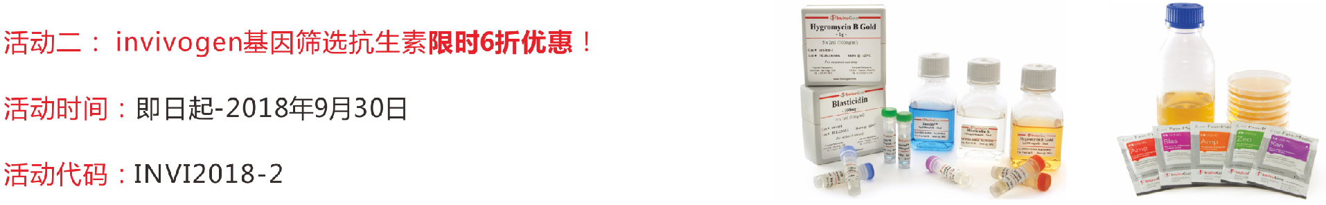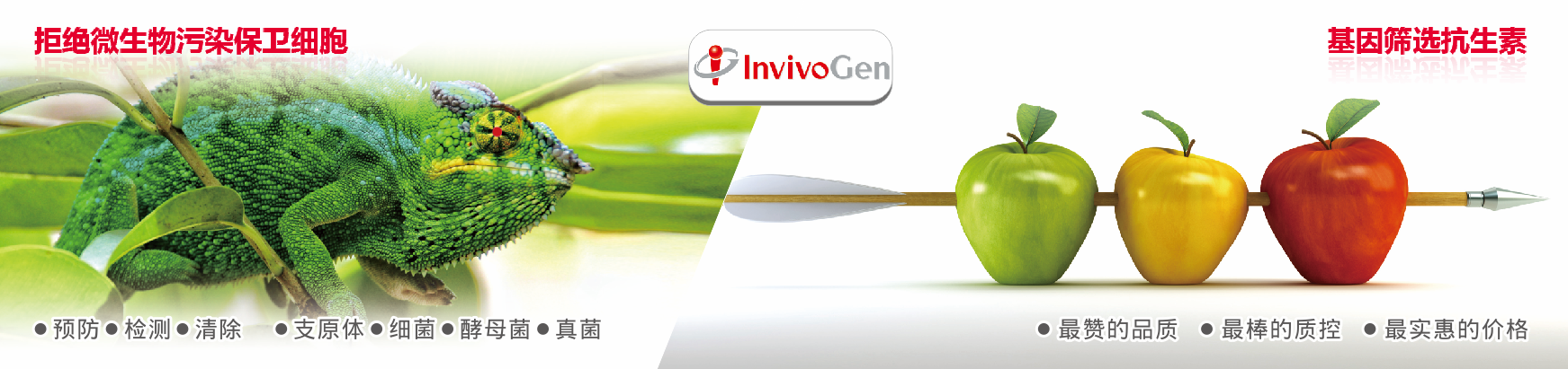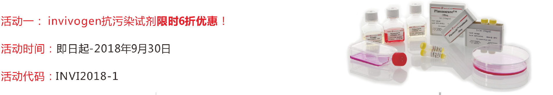 在科研實驗中,微生物污染是細胞培養過程中面臨的一項長期的嚴重威脅。侵入的支原體、細菌、酵母菌和真菌可以直接殺死您寶貴的細胞或者徹底改變培養細胞的特性,導致不準確的實驗結果,既耗費時間又浪費資源。InvivoGen可以提供多種特異性的產品幫助您在科研實驗中預防、檢測和去除微生物污染。我公司現推出invivogen抗污染試劑限時6折優惠,歡迎咨詢!
